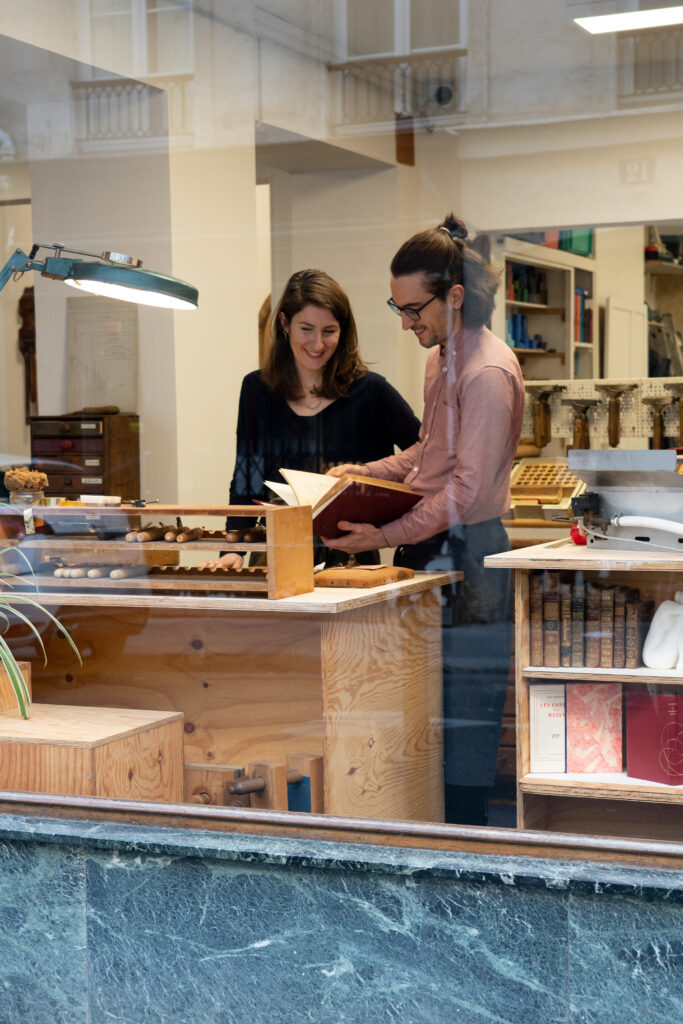 Après un cursus universitaire en histoire de l’art, Eloïse et Alexandre se sont rencontrés lors de leur formation en reliure-dorure.
