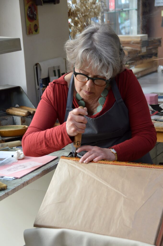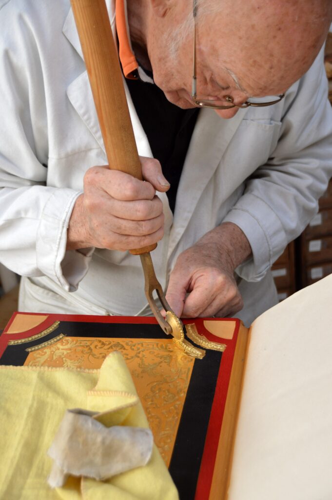 Créé en 1989 par Pascale Therond & Michel Vatonne, deux anciens doreurs de la BNF, l’atelier s’est développé petit à petit, et possède aujourd’hui une belle collection d’outils, de fers à dorer et de polices.